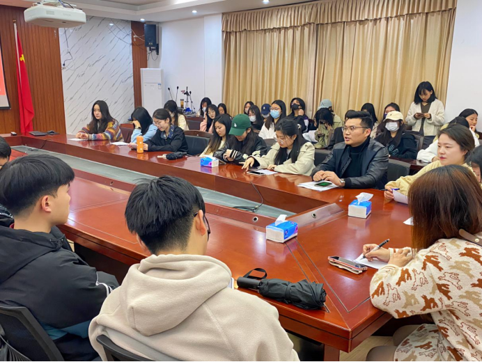 4月2日晚7点30分,我院在四楼会议室举行了19级音乐学实习交流座谈会。出席本次会议的有:音乐舞蹈学院教学科科长梁丹玉、学生科科长胡自爱、音乐系主任张玲玲、19级音乐学全体同学,会议由班主任张亚朋老师主持。