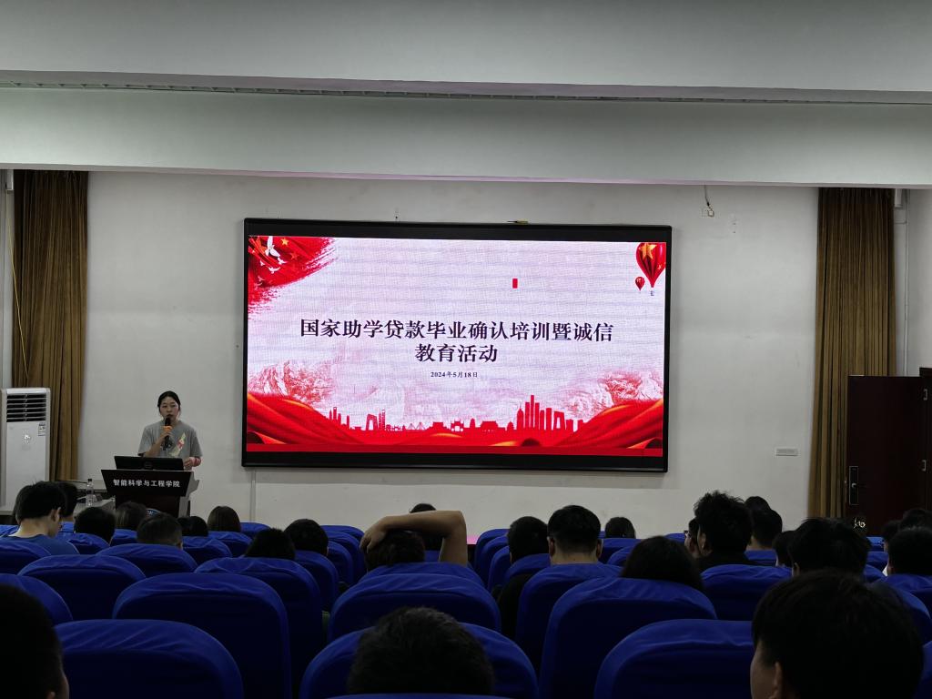 2024年5月17日,我院在集成楼213学术报告厅举办国家助学贷款毕业确认培训暨诚信教育活动,我院学工办辅导员王洋主讲,2024届90余名贷款毕业生参加。
