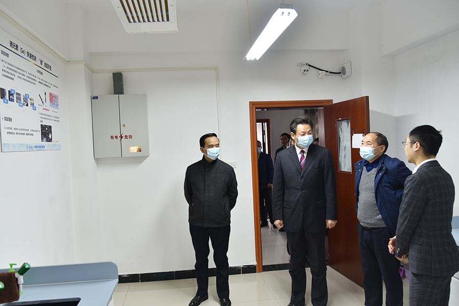 夏锡璠一行首先考察了硒科学与产业研究院,听取了硒科学与产业研究院最新研究成果介绍,并仔细观看工作人员演示“硒”试纸使用方法,充分肯定了我校在科学研究及服务地方方面取得的成绩,并感谢学校为实现全州绿色崛起、高质量发展所作的努力和贡献。