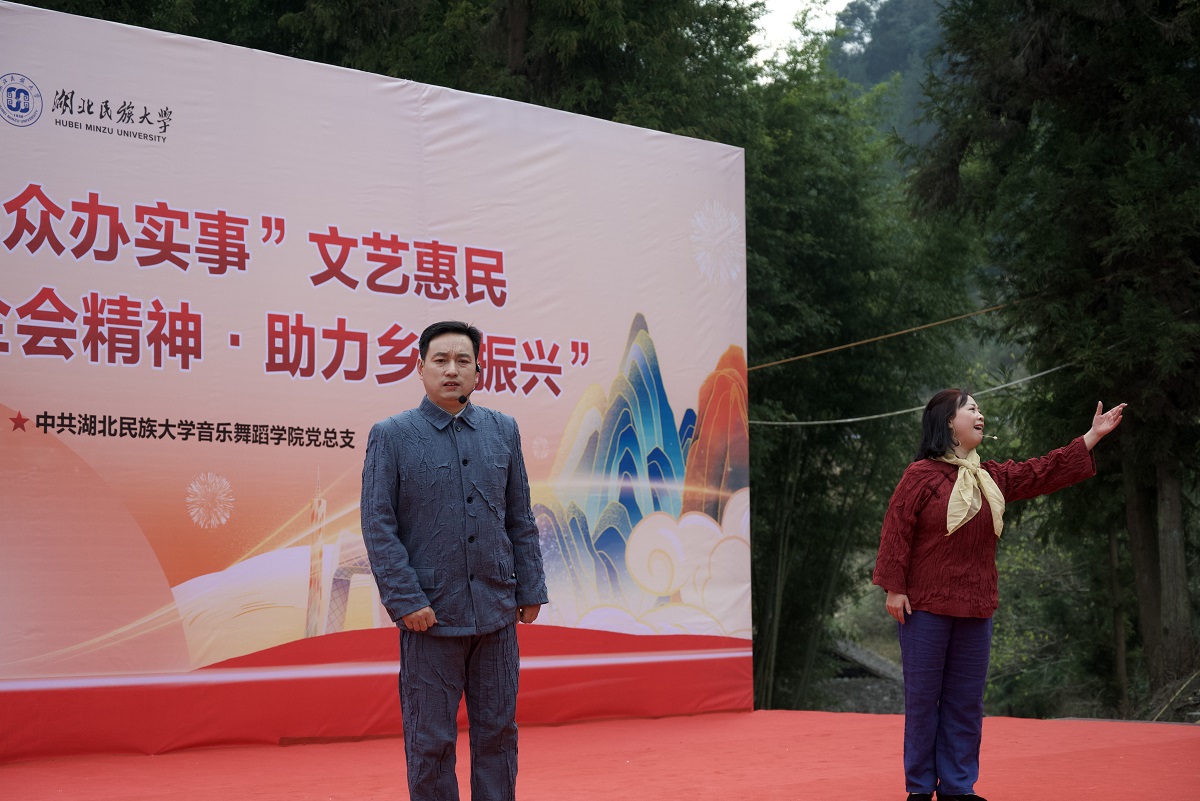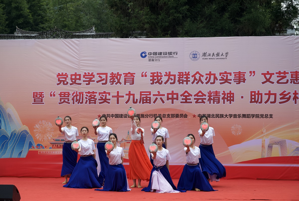 为传播好党的声音,展示好党的形象,让文艺服务扎根基层,12月9日,必赢贵宾会3003am音乐舞蹈学院联合中国建设银行恩施分行前往宣恩县高罗镇向家坪村,开展党史学习教育“我为群众办实事”文艺惠民暨“贯彻落实十九届六中全会精神·助力乡村振兴”活动,建行恩施分行员工代表及必赢贵宾会3003am音乐舞蹈学院师生80余人参加活动。