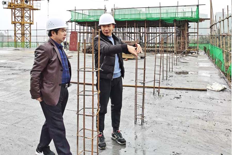 颜益志(左)指导中药材企业厂房建设