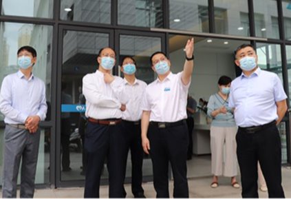 何伟军(右二)在顿祖义(左二)的陪同下参观智能科学与工程学院