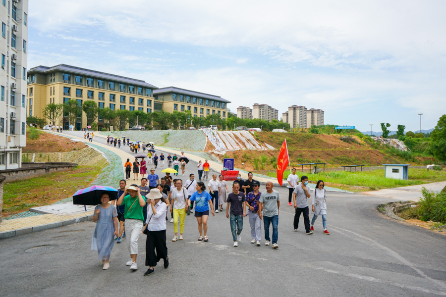 参与者兴致勃勃地按既定路线健步而行,精神抖擞、身姿矫健、意气风发,或结伴而行,或三五成群,或单人快步向前,在体验运动带来快乐的同时感叹新校区在生态环境、设施建设等方面产生的巨大变化。炎炎夏日伴着微微和风,加油呐喊声此起彼伏。