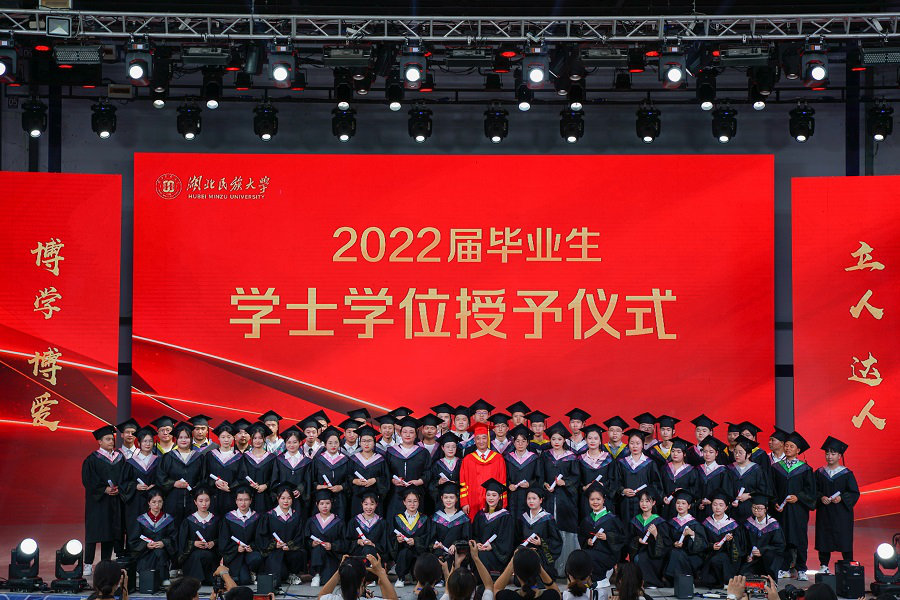 顿祖义在致辞中首先代表学校全体教职员工向2022届毕业生表示热烈的祝贺和美好的祝愿。他说:“今天的毕业典礼,见证的不是你们学习生涯的结束,而是你们追梦圆梦、铸就未来辉煌的开始。你们即将走向社会,迎接你们的,是中华民族发展史上一个伟大的新时代。”他对广大毕业生提出三点希望:一是不忘初心、坚定信念。希望你们厚植家国情怀,坚定理想信念,跟着伟大祖国实现中国梦的节奏,为祖国和人民奉献青春和才干。二是自信自强、拼搏奋斗。希望你们脚踏实地,厚积薄发,在各自岗位上践行“艰苦奋斗、甘于奉献、自强不息、追求卓越”的民大精神,在砥砺奋进中不断收获进步和成功。三是修身律己、崇德向善。希望你们勤于修身、严以律己,堂堂正正做人,踏踏实实做事,不断提升道德修为,做社会主义核心价值观的模范践行者和忠诚捍卫者。