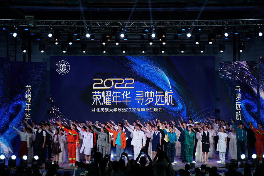 欢送毕业生晚会以“荣耀年华,寻梦远航”为主题,分“青春心向党”“奋进新征程”两个篇章展开,涵盖舞蹈、健身操、歌曲串烧、朗诵、情景歌伴舞等多种表演方式。节目展现了毕业生的蓬勃青春风采,抒发了师生间的依依惜别之情,表达了母校与师长对2022届毕业生的美好祝愿。