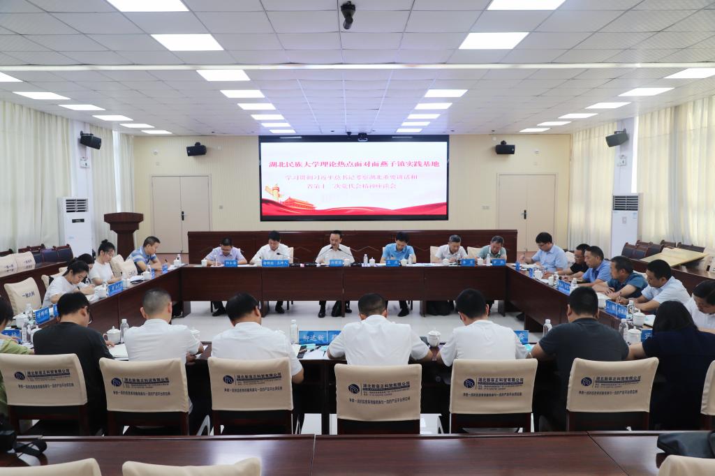 7月26日,必赢贵宾会3003am“理论热点面对面实践基地”授牌仪式暨学习贯彻习近平总书记考察湖北重要讲话精神,推进落实省第十二次党代会部署座谈会在鹤峰县燕子镇举行。党委书记向前进强调,务必要提高政治站位,加强理论研究,完成规定动作,积极争创品牌,结合燕子镇实际,发挥民大的科教优势,共同推动习近平总书记的讲话精神和省党代会精神在基层落实落地、开花结果。