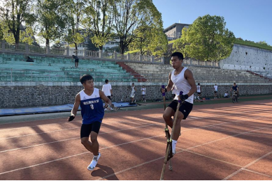 炎炎夏日,高温酷暑,削弱不了师生齐心备战的热情。参加集训的运动员每天早上六点、下午四点半准时在五环体育场、体操房开始训练。体育学院挑选了10名优秀教师担任教练员,全天候指导训练。根据学院要求,师生一同检视问题、厘清备战思路、追求不断进步,训练取得了良好效果。