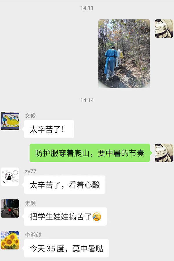 民大志愿者的辛劳和信念、善良和担当,恩施市民看在眼里,也刻在了心里。与我校医学生并肩抗疫的医护人员竖起大拇指:“同学们很能吃苦,不管多么辛苦,都能坚持完成任务!”龙凤镇吉心村的一位居民看到志愿者们穿着厚厚的防护服,冒着烈日,顶着35摄氏度的高温走村串户,到居住偏远的村民家里上门采样,不由得发出感叹:“把学生娃们搞辛苦了。”