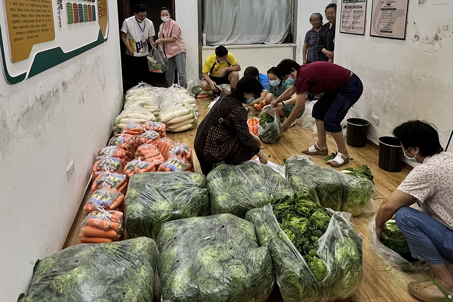 志愿者有序分装蔬菜