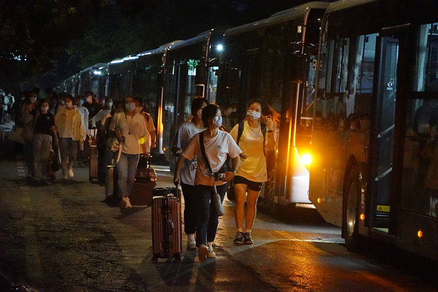 9月17日晚21时05分,临时管控中的必赢贵宾会3003am校园夜色苍茫,15辆载着民大支援恩施战疫第四批志愿者的大巴划破了夜幕,驶向恩施市各个社区的疫情防控第一线。这次,学校派出了449名医学生、16名带队老师。除此之外,44名参与校内替换轮值的战疫志愿者也已经抵达各自的疫情防控工作岗位。