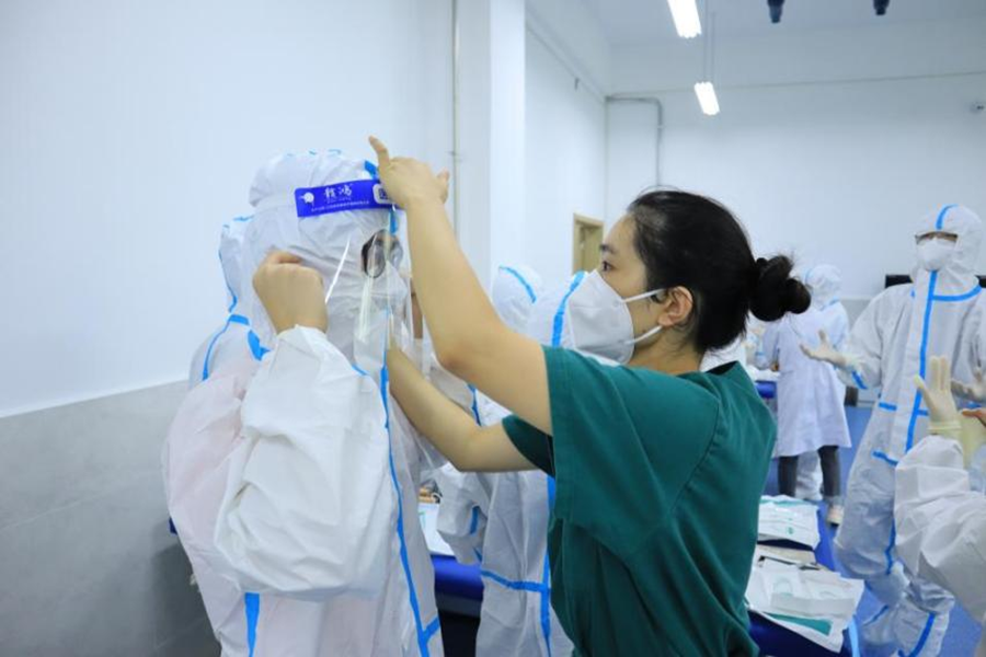 “只有每位同学都能规范地穿脱防护服,同学们的安全才有保障。”