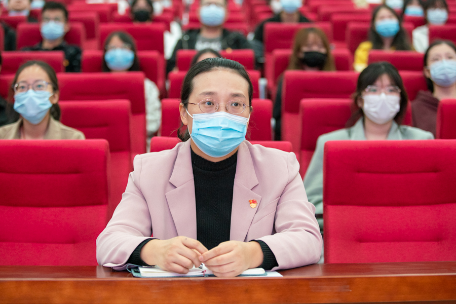 党建引领,统战融入。党委统战部常务副部长、港澳台事务办公室主任丁莉教授为国家经济社会发展所取得的巨大成绩感到无比自豪,为所肩负的历史使命和任务感到无比振奋:“要将全面深入学习贯彻党的二十大的精神作为重要政治任务,以党的二十大精神为指引,全面坚持党对统一战线工作的领导,积极完善构建我校统战工作格局,为学校高质量发展和教育教学改革凝聚人心、智慧和力量。要坚持最广泛的爱国统一战线,积极铸牢师生中华民族共同体意识,为中华民族伟大复兴贡献力量。”