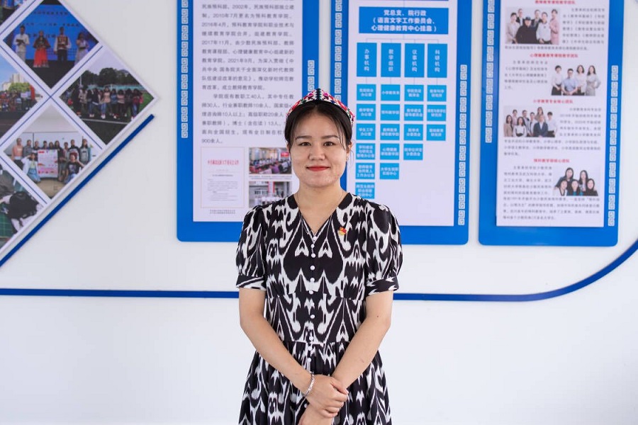 铸牢中华民族共同体意识是国家统一之基、民族团结之本、精神力量之魂。作为民族高校,更是要扎根中国大地,以铸牢中华民族共同体意识为主线,以打造民族团结教育基地为目标,不断深化民族团结进步教育。来自教师教育学院的维吾尔族辅导员古兰拜尔·吾斯曼主要负责学院少数民族学生工作,她告诉记者:“今天,万众期待的中国共产党第二十次全国代表大会隆重开幕,我怀着激动的心情收看了开幕式。教师教育学院每年培养500多名少数民族预科生,作为一名思想政治辅导员,如何引导各族学生相互融合,相互学习,团结进步,把铸牢中华民族共同体意识融入到学生工作的每一个环节,努力成为中国特色社会主义事业合格建设者和可靠接班人,就是我的本职工作!习近平总书记多次强调‘铸牢中华民族共同体意识’,我想,作为基层教育工作者,一定要加强学习,在本职岗位上脚踏实地,紧跟党的步伐,促进各民族同学像石榴籽一样紧紧抱在一起,共同建设伟大祖国,共同创造美好生活!”