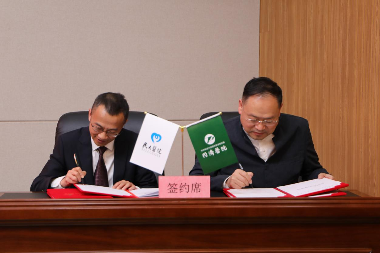 随后,附属民大医院与同济医院举行了医疗联合体签约揭牌仪式。据悉,在未来几年内,同济医院将根据民大医院及恩施州医疗总体情况,有计划、有步骤地输入同济医院先进诊疗技术和管理模式,为附属民大医院打造一批优势学科、培养一批骨干人才、建立一套科学高效的管理体系。