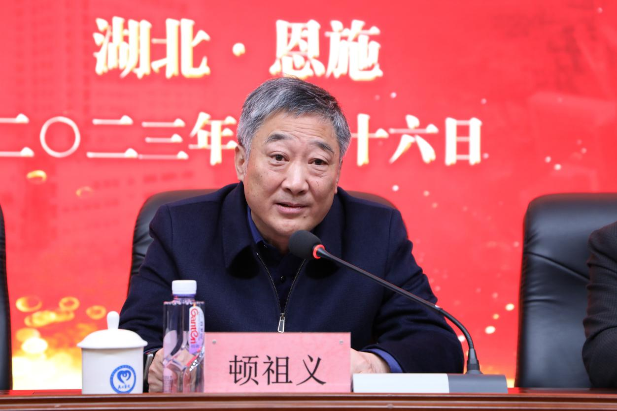 顿祖义在讲话中指出,同济医院各位专家带来的先进技术、管理经验以及前沿的学术信息必将助推附属民大医院及恩施州公立医院迈向高质量发展的新征程,附属民大医院与同济医院建立医疗联合体关系,标志着同济医院对附属民大医院的支持与合作步入更有广度、更有深度、更有力度的新阶段。他要求,附属民大医院要以医疗联合体建设为桥梁,不断加强与同济医院的全方位深度合作,提升自身的内涵发展能力,强化异地协同,充分发挥医疗联合体优势,共同助力恩施州医疗卫生事业高质量发展。