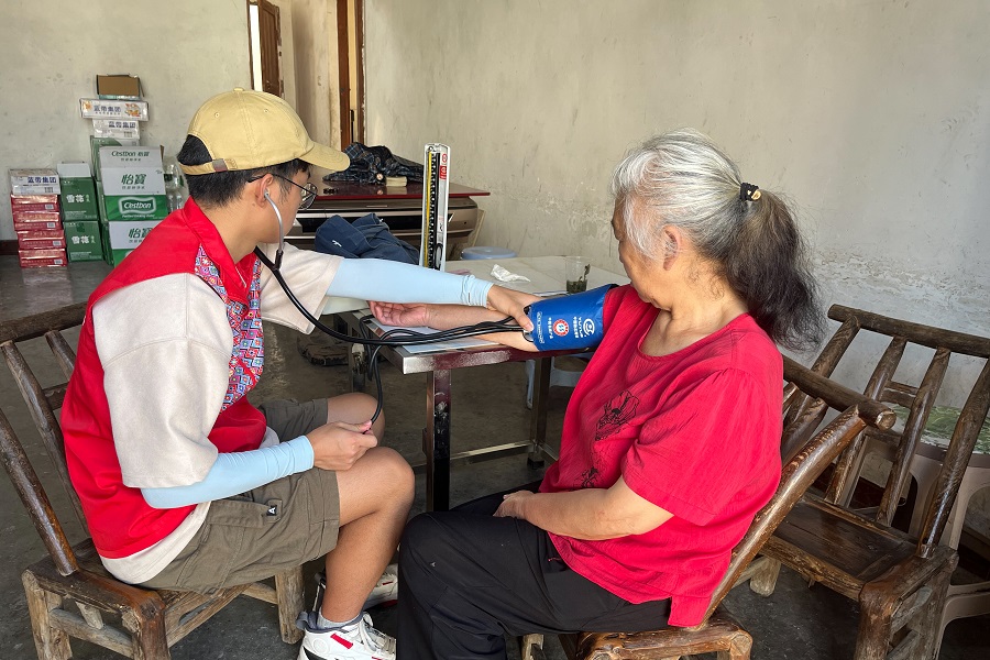 团队成员为居民测量血压