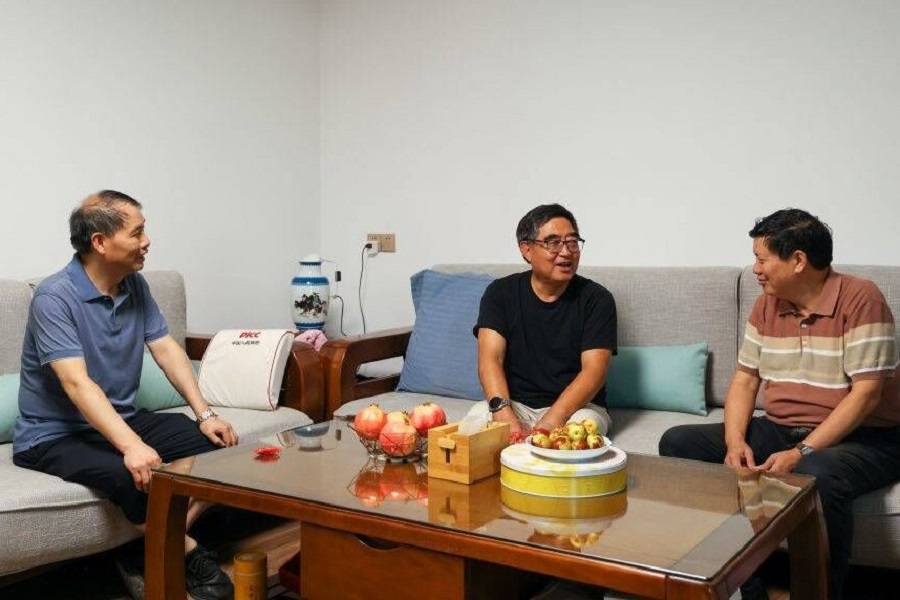 汪兴平一行来到桂花园教职工宿舍,看望离退休教师李清政教授。汪兴平关切询问李清政的身体状况和退休生活,向他介绍近年来学校的发展变化和取得的可喜成绩,感谢他对学校发展做出的贡献,并认真听取他对学校发展的意见和建议。