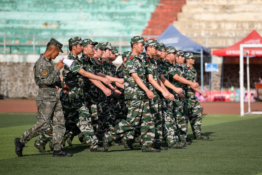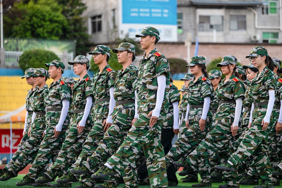 9月11日,2023级4594名本科新生正式迎来为期14天的军训。军训团下设4个营,以二级学院(部)为单位编设16连,整组编设60个排,分别在民族体育场、五环体育场进行军事训练。