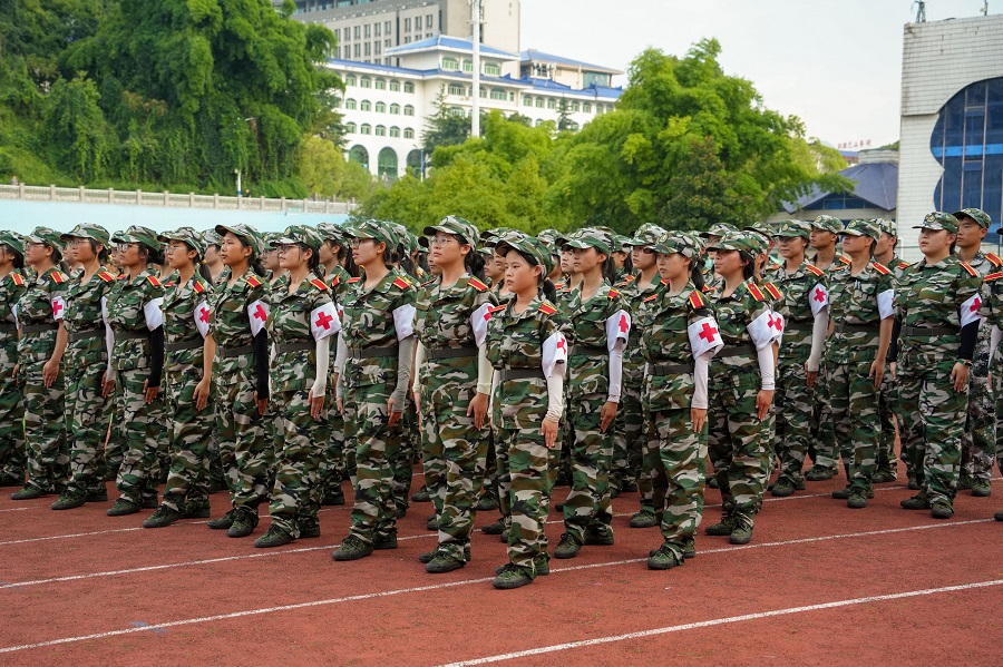 在过去的一周时间里,各排已在不同程度上熟悉、掌握立正、稍息、跨立、停止间转法等相应军事技能。“一二三四,一二三四”,铿锵的口号在空旷的操场声声回响,晶莹的汗水从少年的额角慢慢滴落,千百次定点的挥臂,坚定且有力的步伐,军训将会成为所有参训学生大学生活中一段难忘的经历。“恰同学少年,风华正茂”,训练场上,参训学生英姿飒爽,认真专注,在日复一日的军事训练中不断磨练意志,增长本领。军事训练不仅能够考验和磨砺参训学生的意志,加强其组织性、纪律性,更是培养学生爱国主义情怀的重要途径。在军训团和学校组织下,参训学生分别以营为单位组织前往大学生广场观看红色爱国电影《红海行动》,进行爱国主义宣讲教育学习。医学部为参训学生准备红十字袖章,用这一举动来彰显医学生“救死扶伤”的使命与担当。