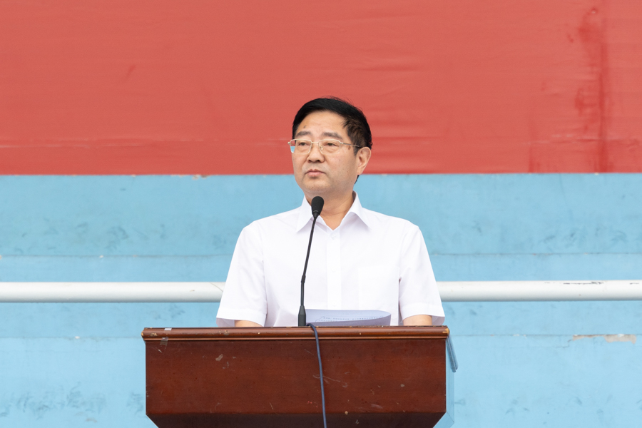 邓磊作总结讲话。他代表学校党委和军训团对2023级新生表示祝贺,对承担本次军训任务的武警恩施支队全体教官致以崇高敬意,对为本次军训提供后勤保障、管理服务及新闻宣传的工作者表示感谢。他表示,军训就是培养青年一代家国情怀、锻造坚韧品格和提振精气神的重要途径,参训学生充分发扬军人“轻伤不下火线”和“掉皮掉肉不掉队”的作风,经受住了考验和挑战,承训教官态度严谨、作风优良、技术过硬,体现了很高政治思想素质和军事技术水平。同时,他对2023级本科生提出三点希望,要胸怀大志,报效祖国;要立德为先,砥砺品质;要崇学笃行,求真务实。