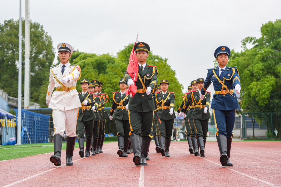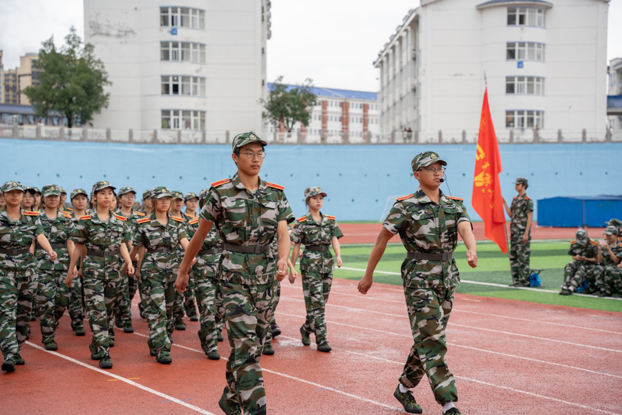 参训学生代表以二级学院(部)为单位进行分列式表演,整齐的步伐、嘹亮的口号、严整的军姿,展示出积极进取、昂扬向上的精神风貌。