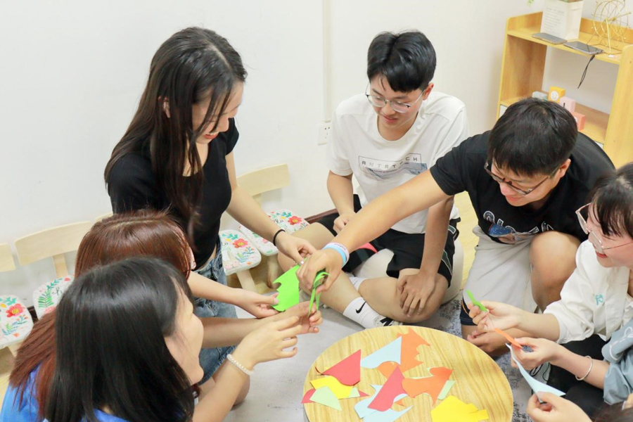 团体辅导,点亮“心理育人”之灯。育德于心,成德于行。在书香社区学生之家活动空间里,“蝉鸣仲夏,心灵奇旅”团体朋辈辅导活动正在进行。“我印象最深刻的是大一的时候,学习压力大而且作为班干部工作任务重,我整个人心情很糟糕。通过参加学院的团体辅导活动,在老师和朋友的耐心开导下,我逐渐缓解了心理压力,找到了‘快乐处方’”。在活动的第三个环节中,李同学分享自己的真实经历。团体朋辈辅导活动以“助人自助”的理念为指引,通过游戏互动、寓教于乐的方式,助力培育学生理性平和、乐观向上的健康心态,现已成为书香社区的特色活动。