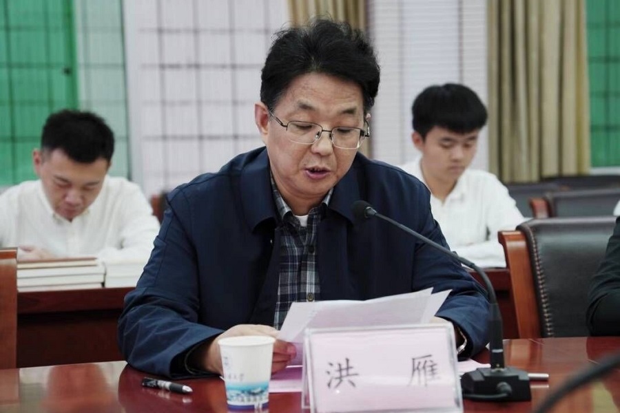 洪雁为第四期“青马工程”培训班授旗并讲话,他充分肯定学校“青马工程”的传承与接替,希望“青马工程”学员坚定理想信念,做一名马克思主义的坚定信仰者;自觉学习马克思主义理论,做一名马克思主义的坚定拥护者;勇于实践,做一名马克思主义的积极践行者。