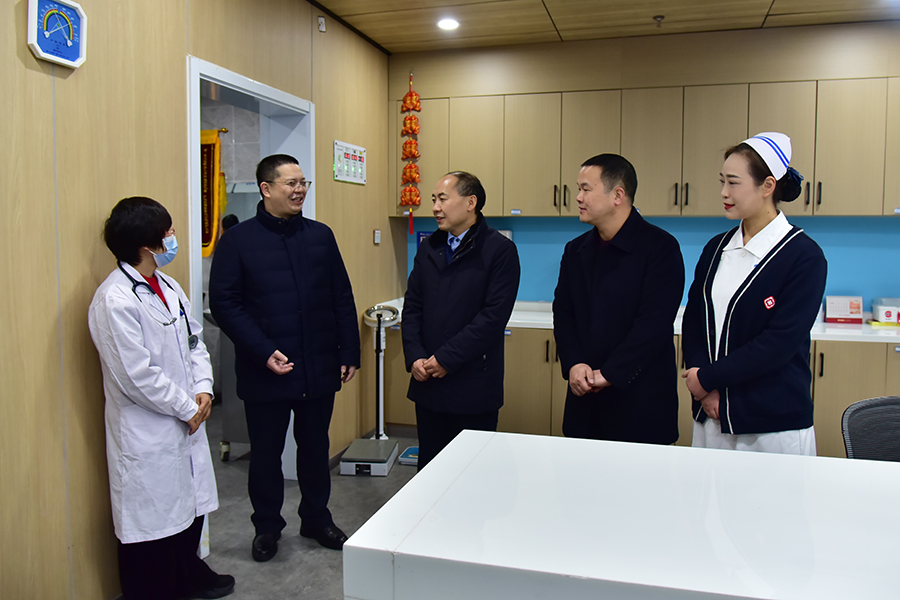 李军一行先后来到心血管内科、小儿内科,为节日值守医护人员送上慰问品,并代表学校对他们在春节期间履职尽责、辛勤工作表示感谢。李军详细询问了医院春节期间值班值守、医疗接诊、后勤保障等情况,强调必须确保春节期间医疗服务有序运行,让每一位住院患者都享受到安全、舒心的医疗服务。