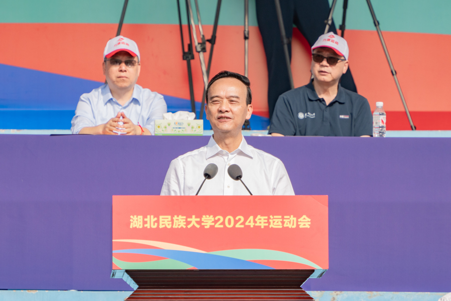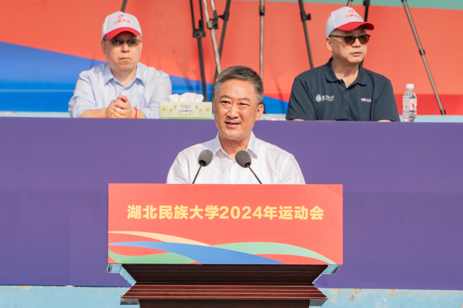 顿祖义在开幕辞中指出,运动会是一场五育融合育新人的成果展示,是广大师生展现自我风采的舞台,是真正实现五育融合,构建全方位育人格局的生动课堂;运动会是一场笃行不怠向未来的竞技盛会,是生动诠释“更高、更快、更强”的自我挑战精神和“公平、公正、平等、自由”的体育竞技精神的成长课程;运动会是一场中华民族一家亲的生动图景,是促进多元文化交流交融团结进步的平台;运动会是一场同心共筑中国梦的集体宣誓,是各民族同台携手、守望相助的团结盛会。他希望全体运动员在竞技场上秉持“野蛮其体魄,文明其精神”的宗旨,发扬奥林匹克精神,于竞技场上努力拼搏、团结奋进、奋勇争先、细心感受,在运动中用心体悟中华文化的灿烂多姿,自觉做各民族交流交往交融的实践者和推动者,在运动中展现民大风采,并预祝全体运动员取得优异的成绩。