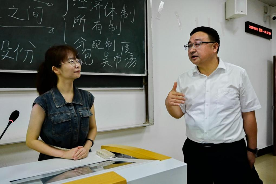 当天上午8时,学校党委书记戴清堂带队前往马克思主义学院,听取《马克思主义政治经济学》课程,详细了解“开学第一课”教学情况,并参与马克思主义学院、文学与传媒学院、教师教育学院联合开展的主题教研活动。他对青年教师的课堂教学予以充分肯定,并提出改进建议。课间,他与师生亲切交流,勉励青年学子“看远”“看宽”“看淡”,引导同学们树立正确价值观、人生观与发展观。