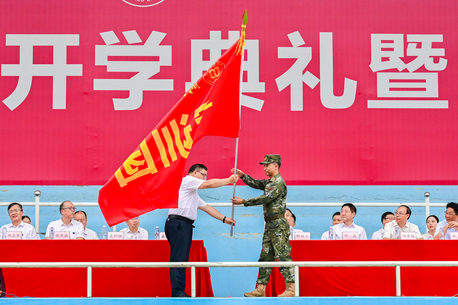 2025级本科生军训动员大会由顿祖义主持。戴清堂为军训团授旗。军训团政委、学校党委副书记邓磊宣读军训团成立文件。