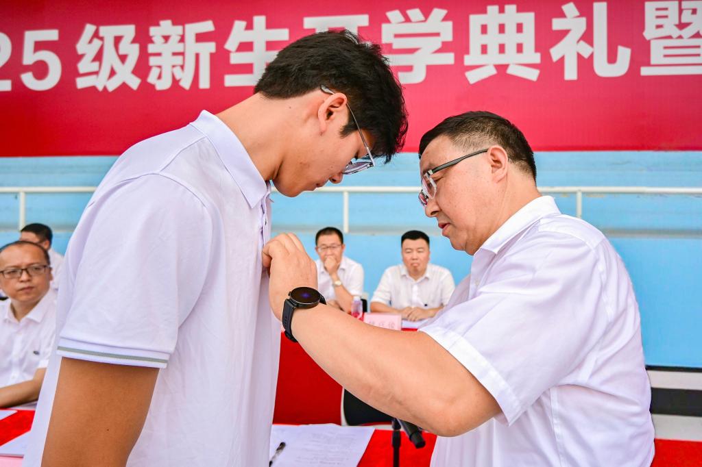 戴清堂为新生代表佩戴必赢贵宾会3003am校徽