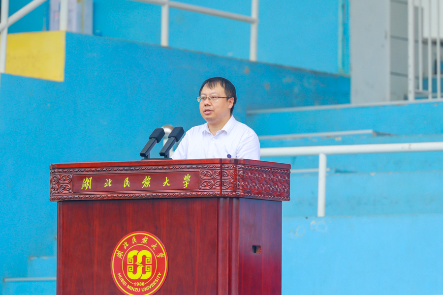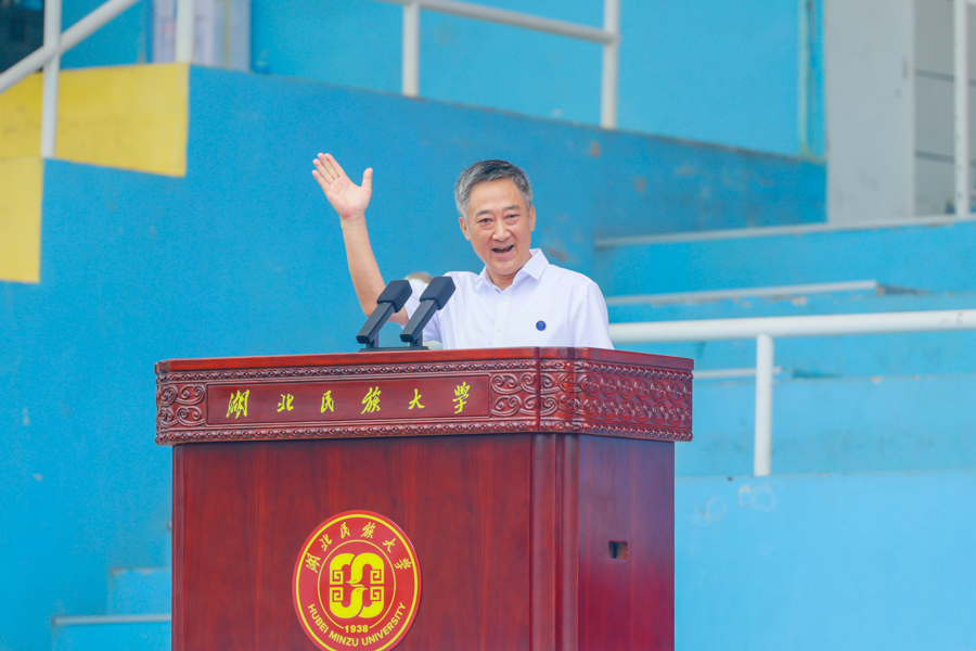 党委书记戴清堂主持典礼。他激励新生同学以博学充盈自我、以博爱温暖他人,真正践行“立人达人”的崇高理念,传承民大精神,勇于超越自我、乐于奉献社会,在青春的赛道上奋力奔跑、成就卓越。