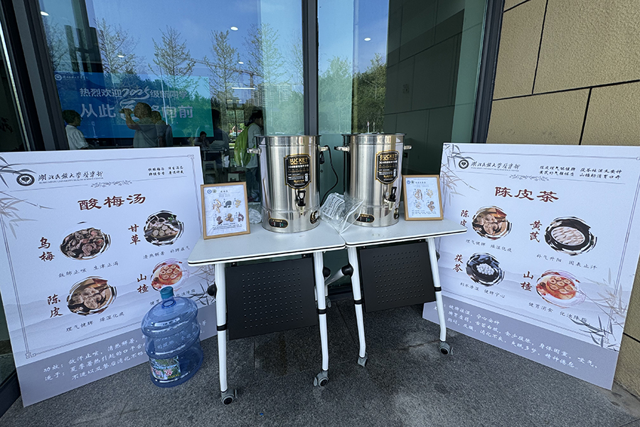活动现场,中医药特色茶饮区成为迎新“暖心驿站”。医学部结合初秋气候特点,精心准备了酸梅汤、陈皮茶两款清热解暑饮品。新生与家长刚结束报到奔波,便能接过工作人员递上的温热茶饮,酸甜的酸梅汤生津止渴,醇厚的陈皮茶理气开胃,有效缓解旅途疲惫与天气燥热。“没想到报到还能喝到这么贴心的养生茶,感觉特别温暖。”来自湖南的新生小李捧着茶杯说道,家长们也纷纷称赞茶饮“既实用又有医学部的专业范儿”。