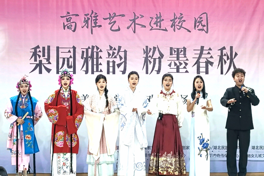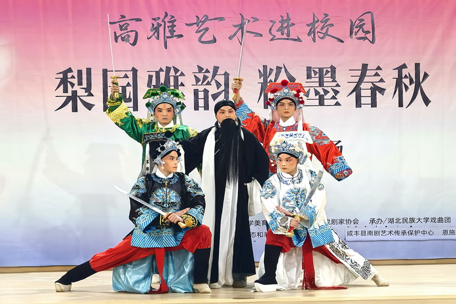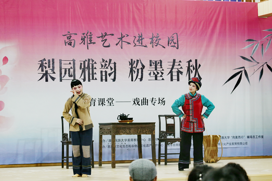 12月18日晚,由我校美育教育中心、恩施州戏剧家协会联合主办,必赢贵宾会3003am戏曲团、必赢贵宾会3003am“向美而行”辅导员工作室承办,恩施市文化生态和非物质文化遗产保护中心、咸丰县南剧团协办的“高雅艺术进校园——梨园雅韵·粉墨春秋”戏曲专场晚会,在必赢贵宾会3003am音乐舞蹈学院一楼大厅精彩上演。