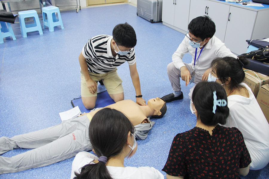 为向新入职教师普及应急救护知识,提升急救能力,更好地应对意外突发情况,7月13日晚上,教师发展中心邀请民大附属医院医生李杨、朱敏在医学实训中心为学校2022年新入职教师开展急救知识培训。李杨首先为大家进行了心肺复苏的理论知识培训,主要包括心脏骤停临床表现与诊断、心肺复苏概述、单人施救成人心肺复苏流程、胸外按压方法、开放气道方法、人工呼吸方法等六个方面。随后,朱敏进行了心肺复苏的标准示范。理论培训结束之...