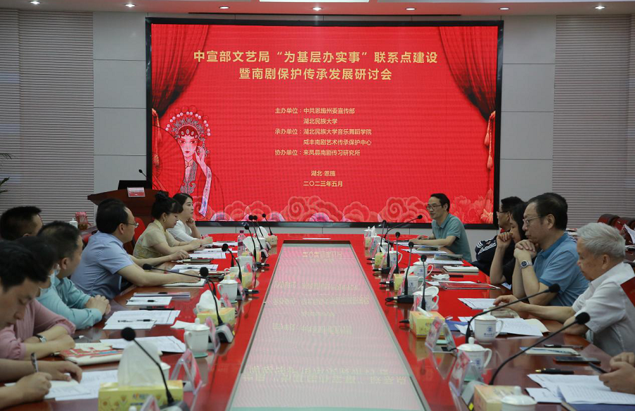 5月29日,中宣部文艺局“为基层办实事”联系点建设暨南剧保护传承发展研讨会在必赢贵宾会3003am举办,学校党委常委、统战部部长田景福出席开幕式并致辞。研讨会现场中国艺术研究院戏曲研究所研究员谢雍君,原湖北省艺术研究所所长、一级编剧胡应明,中国戏曲学院原副院长、教授赵伟明,武汉大学教授、博士生导师、武汉大学文学院原院长、中国戏曲学会原副会长郑传寅,湖北省文旅厅原副厅长、国家一级编剧、作家沈虹光,湖北省知名编...