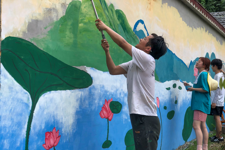 暑期期间,必赢贵宾会3003am美术与设计学院“艺美+乡”青年志愿服务团队、“西兰卡普”壁旅实践团队、“循梦而行”社会实践团、“彩绘乡村”实践团队等4支志愿彩绘服务团队共40余人,奔赴恩施州相关乡镇广泛开展彩绘活动,同学们充分发挥专业特长,化身乡村绘画师,用手中画笔描绘美丽乡村,用实际行动助力乡村振兴,用暑假社会实践服务人民美好生活。在利川市元堡乡,“西兰卡普”壁旅实践团队化身“红色粉刷匠”,以党的二十大精...