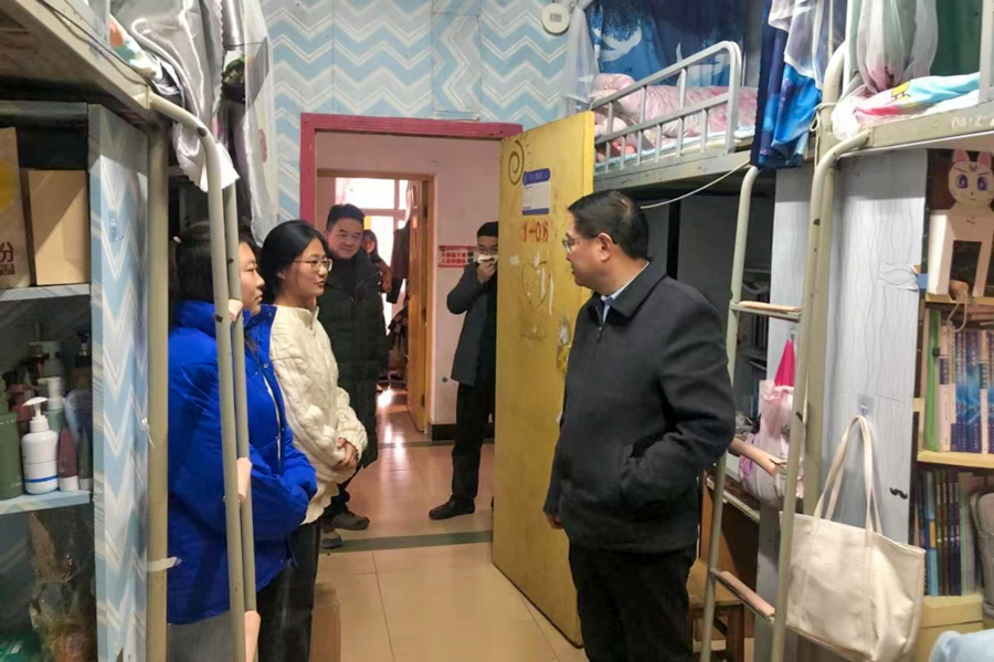 2月27日下午,学校党委副书记邓磊深入学生公寓了解新学期开学学生返校情况及公寓安全等各项准备工作,学生工作部(处)部(处)长方云霞、副部(处)长徐杰、赖申昊及公寓管理办公室相关人员参加检查。查看宿舍床位护栏加固情况邓磊先后到本科生、研究生及留学生学生公寓等检查,现场查看床位护栏、消防器材和通道等安全设施设备建设情况,详细了解宿舍安全管理及消防隐患整治情况。邓磊指出,安全工作无小事,要始终保持“时时...