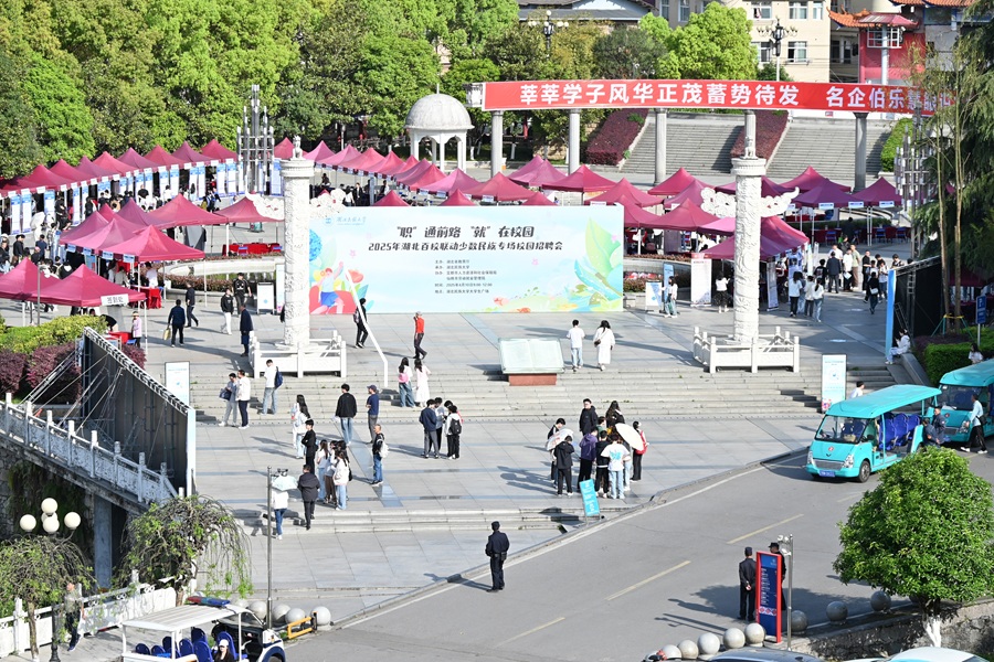 4月10日, 2025年湖北百校联动少数民族专场校园招聘会在必赢贵宾会3003am大学生广场举行。 招聘会现场 校长顿祖义深入招聘会现场指导工作,与来校招聘企业代表交流人才需求等情况。他要求相关部门和学院按照数量充足、供需匹配要求,高频次、多形式组织不同规模的校园招聘会,有效扩大优质岗位供给,同时,建立健全招聘会“备会”机制,做好会前动员、会中指导、会后跟踪,增强校园招聘实效性。党委常委、副校长李军到场指导工作。...