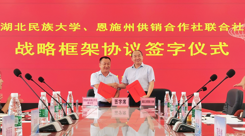 签字仪式现场(通讯员 杨颖/摄)本网讯(通讯员 许思俊 杨颖/文)9月7日,我校与恩施州供销合作社联合社战略合作协议签字仪式在经济与管理学院会议室举行。学校党委常委、副校长李军出席签字仪式。签字仪式上,李军介绍了我校在服务地方经济社会发展,尤其是在乡村振兴规划、中药材检测、电商人才培养等方面的人才储备和科研力量优势。他结合战略合作协议提出要“加强领导、高位推进,科学规划、统筹推进,建立机制、协调联动”...