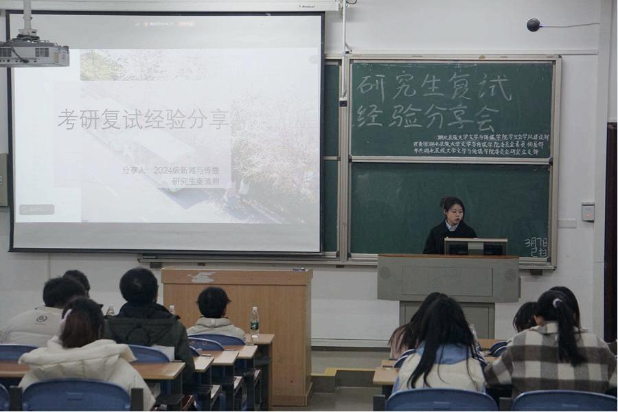 3月7日,文学与传媒学院在修远楼5A104教室举办以“研途逐光,经验领航”为主题的研究生复试分享会,文学与传媒学院2024级研究生刘树凡、秦清熊担任主讲人。分享会现场刘树凡从英语口语、专业课事项、笔试技巧三个方面分享复试经验。他表示,要扎实掌握专业基础知识,构建完整的知识体系;提前准备不同话题的素材,注重积累科研经历,关注学科前沿动态;保持良好心态,劳逸结合,以最佳状态迎接挑战。秦清熊在分享中表示要提前关...