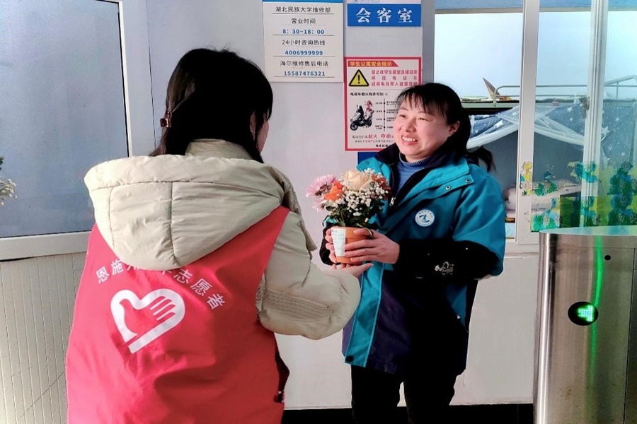 3月8日,在第115个“三八”国际妇女节来临之际,数学与统计学院在学生宿舍楼达人片区开展了以“共净微光,她耀日常”为主题的志愿服务活动。当天,志愿者们协助宿管阿姨清洁宿舍楼大厅、走廊、楼梯等公共区域,并将亲手制作的鲜花盆栽和手写贺卡赠予宿管阿姨。志愿者赠予阿姨鲜花东苑食堂前,以“不被定义的她”为主题的展板吸引了众多学生驻足。在志愿者的引导下,学生们将展板上的“柔弱”“依赖”等刻板标签逐一撕下,并写上...