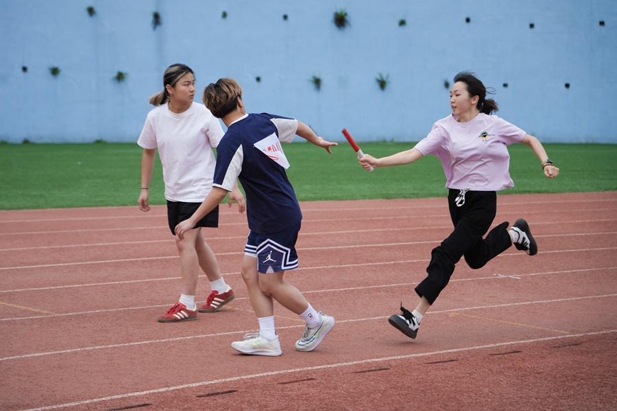 在接力赛中,各代表队凭借精准的交接棒技术和默契配合展开激烈角逐,最后一棒选手在观众的呐喊声中完成逆转冲刺。拔河比赛展现力量与团结的较量,参赛队员紧握麻绳、重心后压,在僵持阶段通过整齐划一的口号凝聚力量。乒羽球台两侧,球员正上演默契攻防,正反手衔接间队友眼神交汇。跳绳场区彩绳翻飞,八人长绳队踩着统一节拍跃入空中,彰显团队协作的无穷魅力